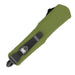 The small FS-3 OD Green features a high-grade aluminum alloy handle and a high-quality D2 steel blade. This dual-action knife allows for both blade deployment and retraction with the same control switch. The ambidextrous design lets you switch the pocket clip for right- or left-hand use. It also includes a glass breaker for emergencies, a nylon sheath, and a pocket clip for convenient carry. All CobraTec Knives are backed by a LIFETIME WARRANTY.