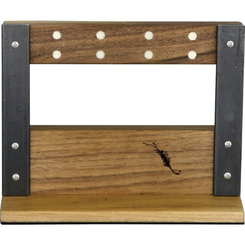 FerrumDimensions: 8.75" x 6.75" x 4.25. Walnut wood construction. Magnets hold four small kitchen knives. Non-slip bottom.