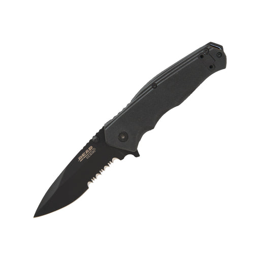 Bear & Son Black G10 Sideliner w/ Trigger and Ball Bearing Serrated