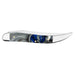 Ride a new wave of craftsmanship with this stunning family of knives, each showcasing a new Pacific Tides Kirinite® handle. The Kirinite material features a swirly, smoky blend of shades in blue, silver and white, making each one unique. The Block Bowtie shield adds a decorative touch, proudly displaying the Case name as a symbol of quality.