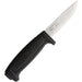 8 1/4" overall. 3 5/8" carbon steel blade. Black polypropylene handle. Black molded plastic belt sheath with drain hole.