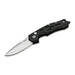 The Boker Plus Thunder Storm, designed by Boris Manasherov, is a rugged tactical knife. It's pronounced finger choil makes it very handy in any grip position. Fast position changes to a reverse grip or vice versa are supported by the ridges in the blade spine handle. The handle scales are milled from aluminum with weight-reducing jimpings. The AUS-8 blade has a light stonewash finish and is secured with a button lock mechanism