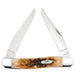 The Muskrat is also referred to as a double-end Trapper. This durable folding knife features two full length clip blades at opposing ends. The Clip blade is commonly used as a multi-purpose blade and preferred for detail work. This pocket knife was originally designed for those who enjoy the sport of muskrat trapping, this slender pocket knife is ideal for skinning any small fur-bearing animal.