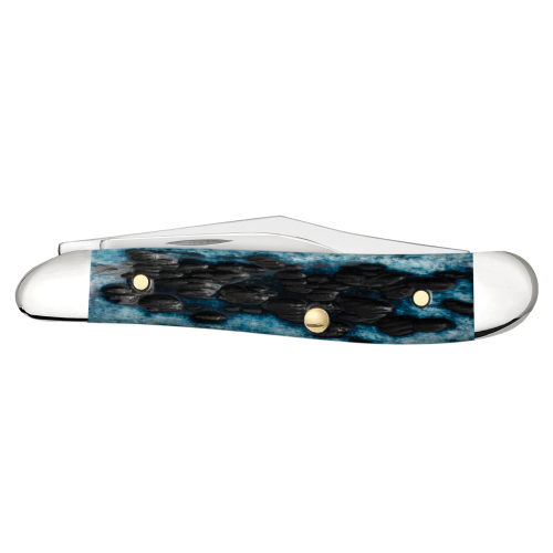 The Pocket Worn® Mediterranean Blue Bone rises to new heights of eye-catching satisfaction. Peach seed jigged for a great feel in the palm, this handle material complements the mirror-polished Tru-Sharp™ surgical steel blade and Case lobed shield in a rich, timeless combination of beauty and precision craftsmanship.