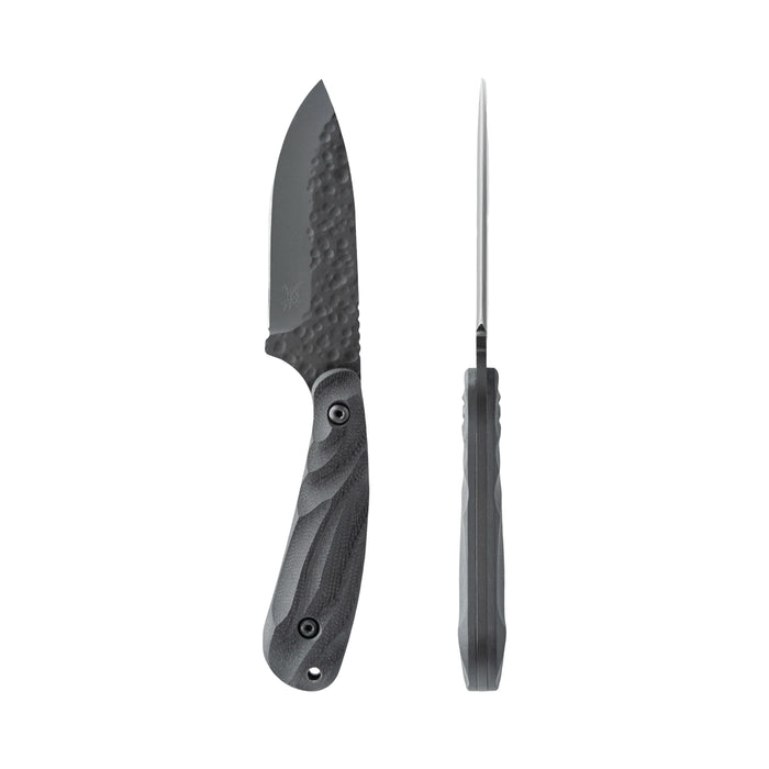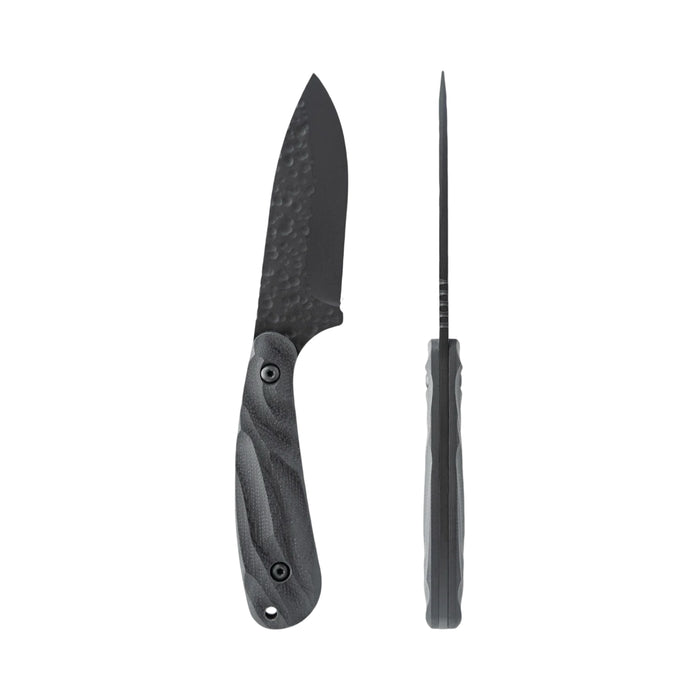 The Fireside Pro is a precision-crafted fixed blade, designed for reliability and style. Featuring a 7-inch overall length with a 3-inch 420 stainless steel blade, finished with a rugged hammered texture and durable PVD coating. The re-ground bevels enhance sharpness and control. Available in Obsidian and Freedom colorways, the Fireside Pro combines functionality with flair. Its matching sheath provides secure, quick access, ensuring your blade is always ready. Ideal for both outdoor and urban adventures, the Fireside Pro is a high-performance knife built to excel in any environment.